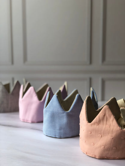 Coronas reversibles. Ideales para fiestas de cumpleaños o sesión de fotos de su primer cumple. Son reversibles, así que puedes usarla por muchos años más por la parte de color sin bordado.